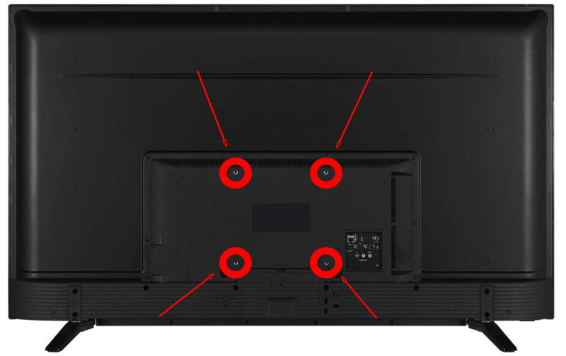Hier ist ein Beispiel für einen Toshiba 43-Zoll-Fernseher mit einem VESA 100x100-Anschluss und lediglich einer M4-Befestigung; diese Schrauben sind normalerweise extrem dünn für Fernseher von Toshiba.